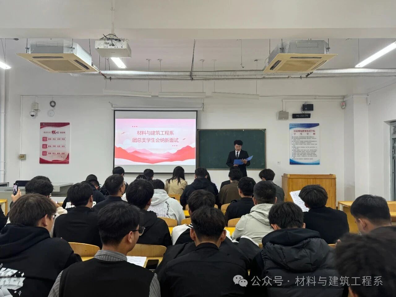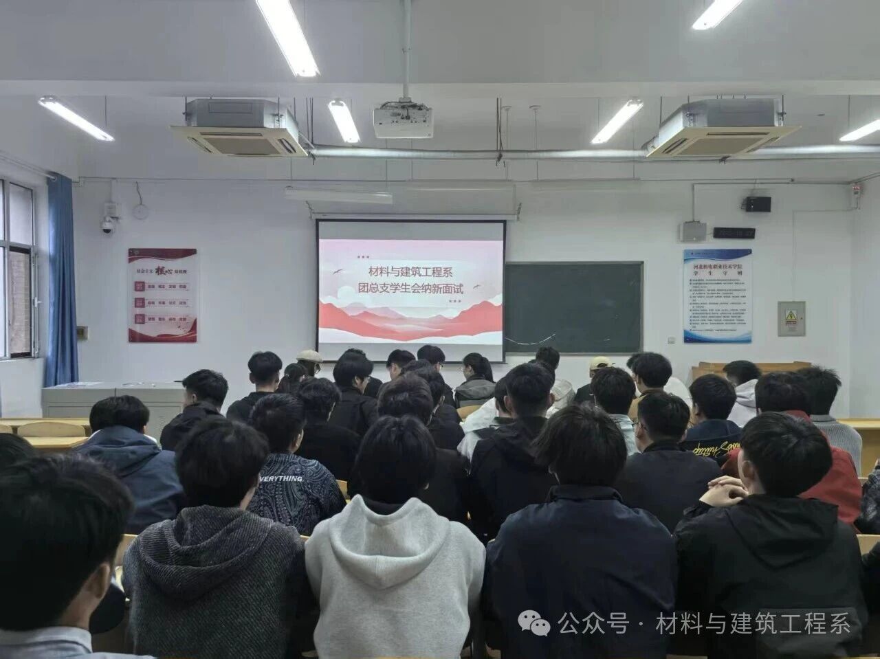 为注入新鲜血液,激发组织活力,搭建学生成长与服务的桥梁。10月17日,材料与建筑工程系团总支学生会分别于B309、B311、B313教室开展2025级新生纳新面试工作,我系25级辅导员、班主任、团总支学生会主要学生干部及97名25级新生参与此次面试。