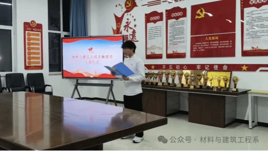 为进一步加强学校共青团组织建设,引导广大青年学生树立远大理想、勇担时代使命,12月18日,材料与建筑工程系于创二420会议室隆重举办25级新团员入团仪式。团总支副书记张洪畅带领全体团员干部与25级新团员齐聚一堂,共同见证这一庄严而荣耀的时刻。