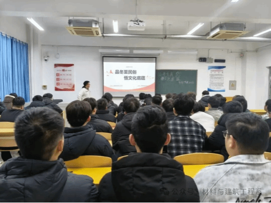 霜雪覆枝,岁至冬至。为探寻冬至民俗背后的文化脉络,筑牢青年文化自信,2025年12月19日下午两点,材料与建筑工程系在各班晚自习教室开展“品冬至民俗,悟文化底蕴”主题团课,带领同学们在传统习俗中感受中华文脉的深厚韵味。