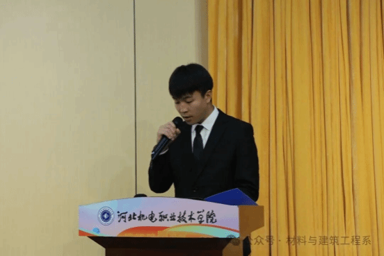 颁奖结束后,理化测试与质检技术2501班孙仕恒同学作为先进学生代表发言。他结合自身参加各类活动与比赛的经历,分享了学习方法和时间管理经验,并表示荣誉既是肯定,更是激励,今后将以更加饱满的热情投入学习和实践,与同学们携手奋进、共同成长。