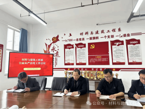 3月13日,材料与建筑工程系在创二420会议室召开全面从严治党工作会议,会议传达学院中层干部会议精神,研究部署近期重点工作。会议由系主任张涛主持,全体教师参加会议。
