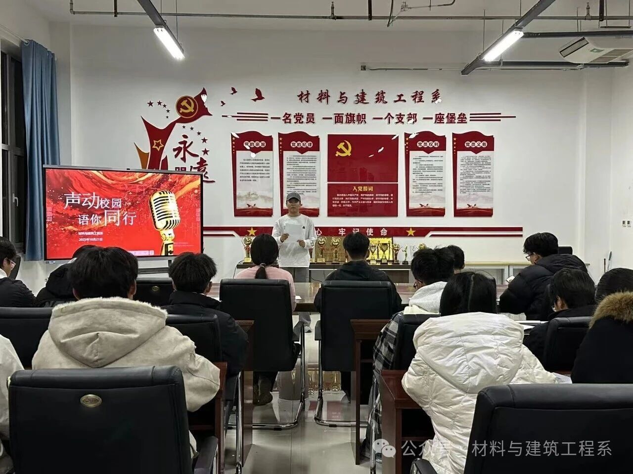 为丰富校园文化生活、提升学生语言表达与舞台掌控能力,10月21日,材料与建筑工程系在创二420会议室举办“声动校园·语你同行”主持人大赛,各班学生代表到场观摩。