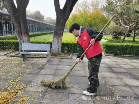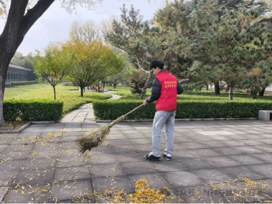 随后,同学们手持简易清洁工具,顺手清扫了纪念馆周边步道的落叶与零星杂物,分工协作、动作麻利,用简约高效的行动守护公园洁净,以细微之举践行志愿服务精神,让自然景致与人文氛围更显和谐雅致。