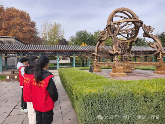 到达达活泉公园后,同学们率先走进郭守敬纪念馆。青瓦白墙的古建风貌庄重典雅,馆内陈列的天文仪器、传世历法手稿静静诉说着先贤的探索历程,千年前的测算回响仿佛在耳畔萦绕,那些凝结在器物与典籍中的科学智慧,在岁月流转中依旧绽放着璀璨光芒。大家仔细端详展品,在沉浸式体验中深切感受郭守敬的科研精神与邢台的文化底蕴,身心也在人文与自然的交融中得到舒缓。