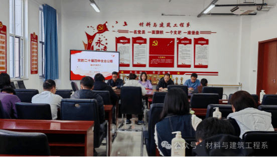 为深入学习贯彻党的二十届四中全会精神,引导全系师生统一思想、凝聚共识,近日,材料与建筑工程系党总支在创二420会议室举行专题学习会。系党总支书记王燕作主题宣讲,全系党员教师参加学习。
