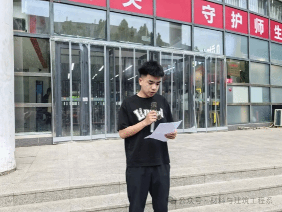 随后,学生代表现场宣读文明倡议书,号召全体同学自觉遵守文明规范、主动参与文明共建,以青春之姿守护校园文明。系团总支负责人发表致辞,寄语材建学子传承五四薪火、强化责任担当,随后宣布签字承诺仪式正式启动。
